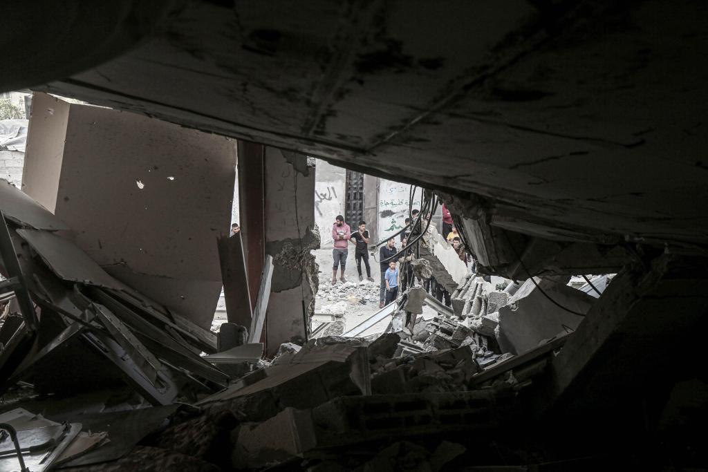 4月26日,當地民眾在加沙城查看以軍襲擊后的廢墟。新華社發(馬哈茂德·扎基攝)