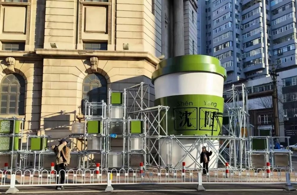 圖為沈陽街頭的巨大咖啡杯。(沈陽市委宣傳部供圖)