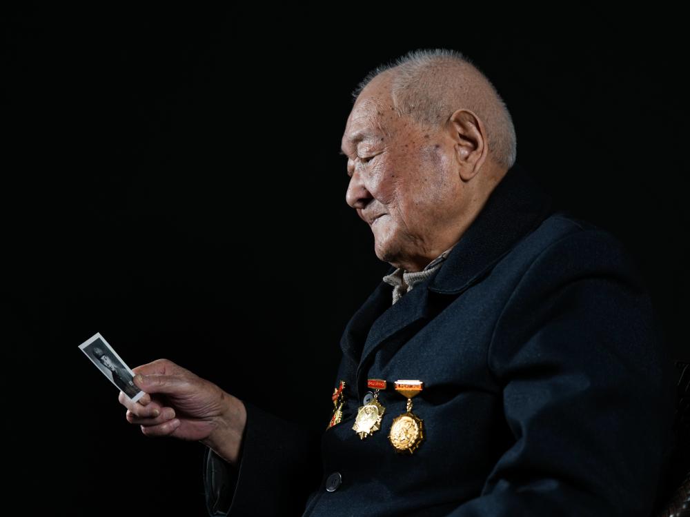 由于戰時條件艱苦,劉壽山未能在抗戰時期留下一張照片。這張珍貴的軍裝照,拍攝于抗戰勝利后?!拔以谀暇┱伊思艺障囵^,拍了這輩子第一張照片?!崩先溯p輕撫摸著泛黃的照片,回憶起那個戰火紛飛的年代。