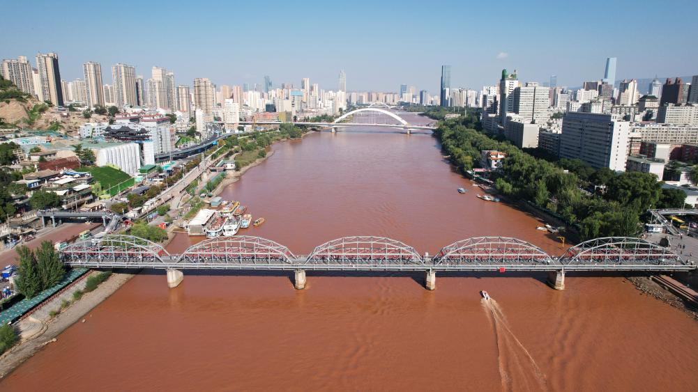 ↑黃河蘭州段兩岸景色。新華社記者陳斌攝