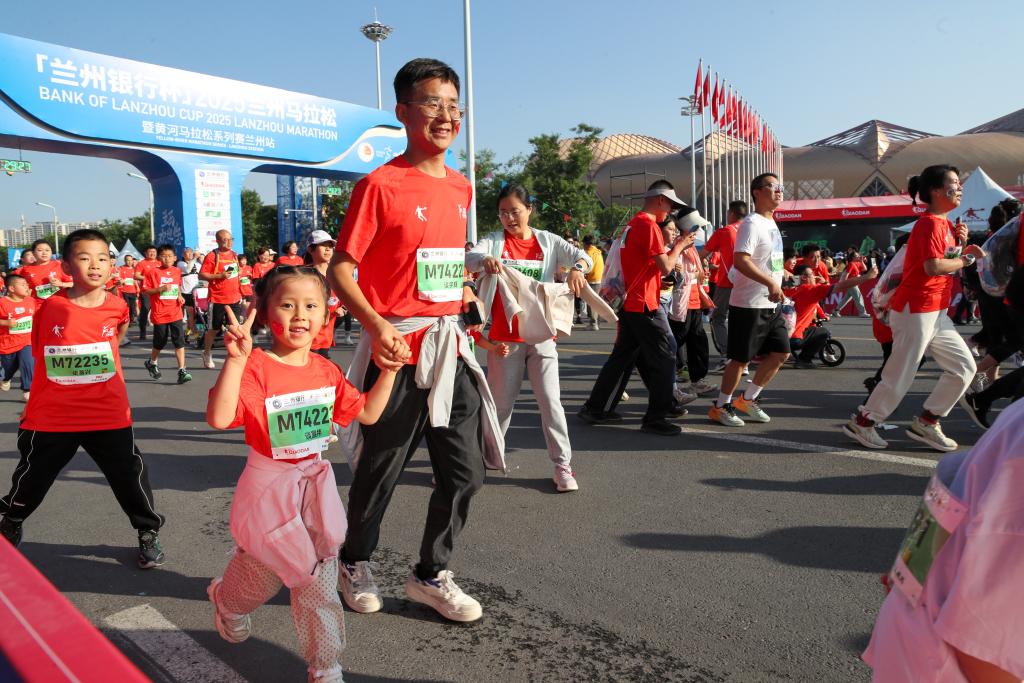 ↑5月25日,參賽選手在蘭州馬拉松比賽中出發。新華社記者郎兵兵攝