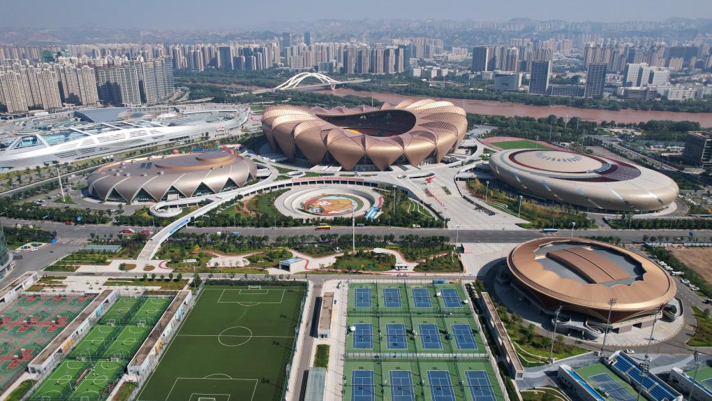 ↑位于黃河蘭州段岸邊的蘭州奧體中心。新華社記者陳斌攝