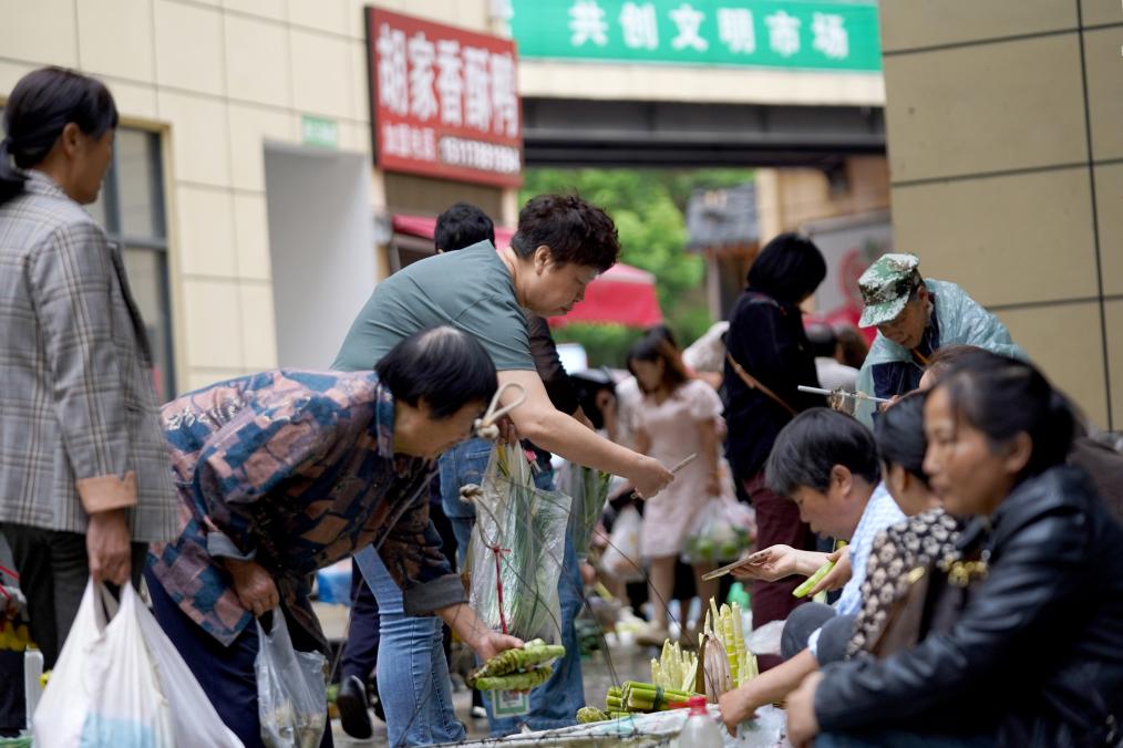 2025年5月23日,市民在貴州省龍里縣農貿市場設立的便民早市選購蔬菜。(王立信 攝)