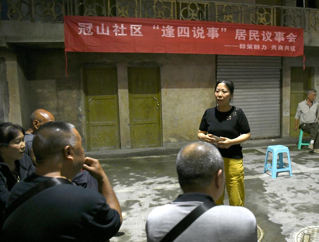 每周四是冠山社區的“議事日”。針對小區臨時召開院壩會很難把居民聚在一起的實際,2024年以來,冠山社區在轄區網格定期召開“逢四說事”院壩會,組織黨員、志愿者等現場跟群眾一起“議社區大事、解居民難事、談生活愁事、理鄰里急事”。