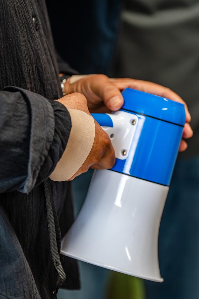 “光靠我一個人的音量不夠大,所以我就到菜市場找到了這么一個喇叭,從這以后我就找到工具了?!睆埞鹈氛f。