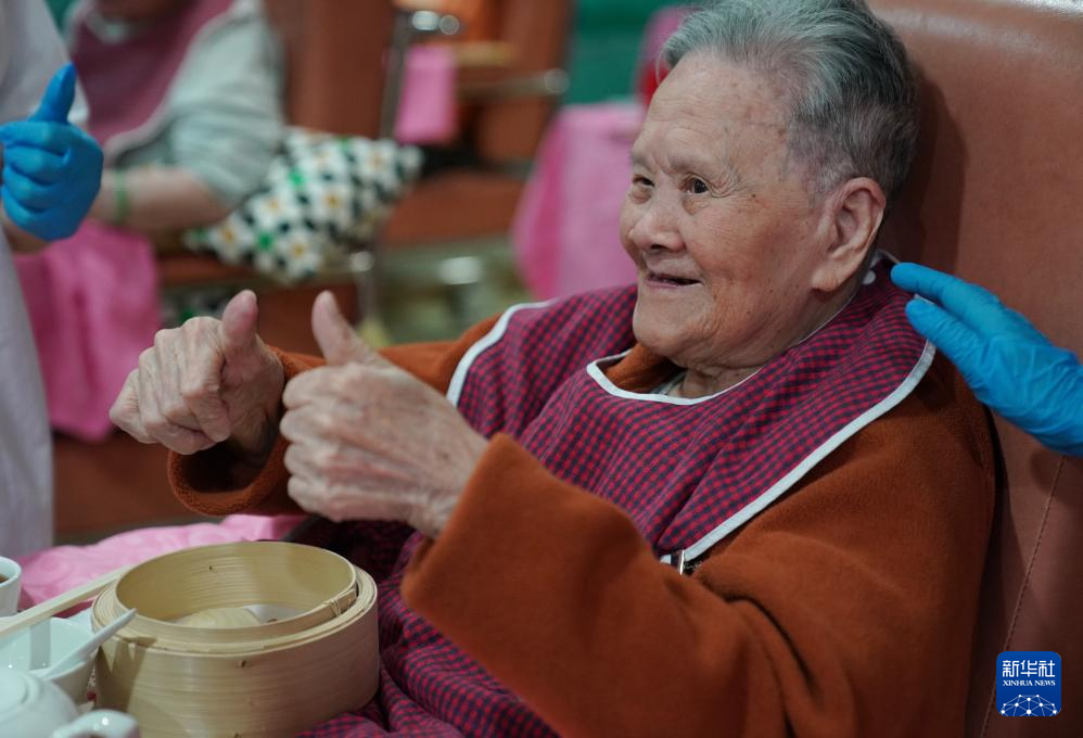 5月24日,在香港松悅園耆和護養院,老人家對“茶樓”的餐飲服務贊不絕口。新華社發(王申 攝)