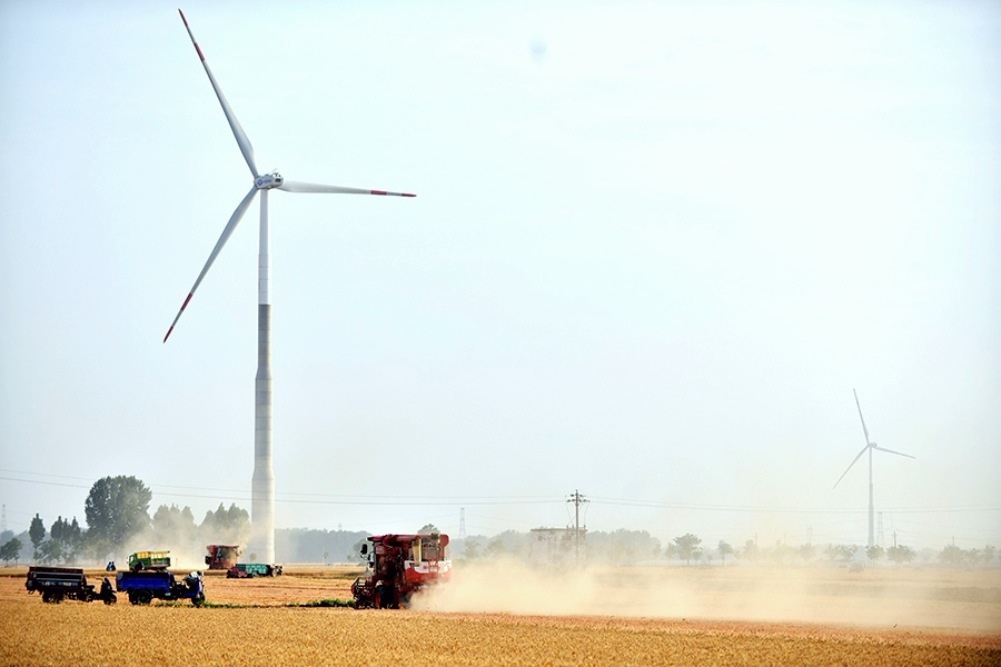 6月5日,河南滑縣種糧大戶杜煥永組織農業機械搶收小麥?;h縣委宣傳部供圖