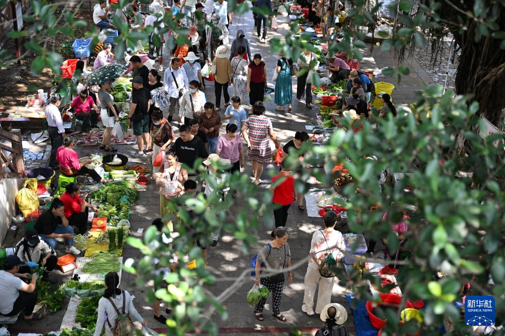 2025年6月7日,市民和游客在五指山市逛“消費助農周末集市”。新華社記者 郭程 攝
