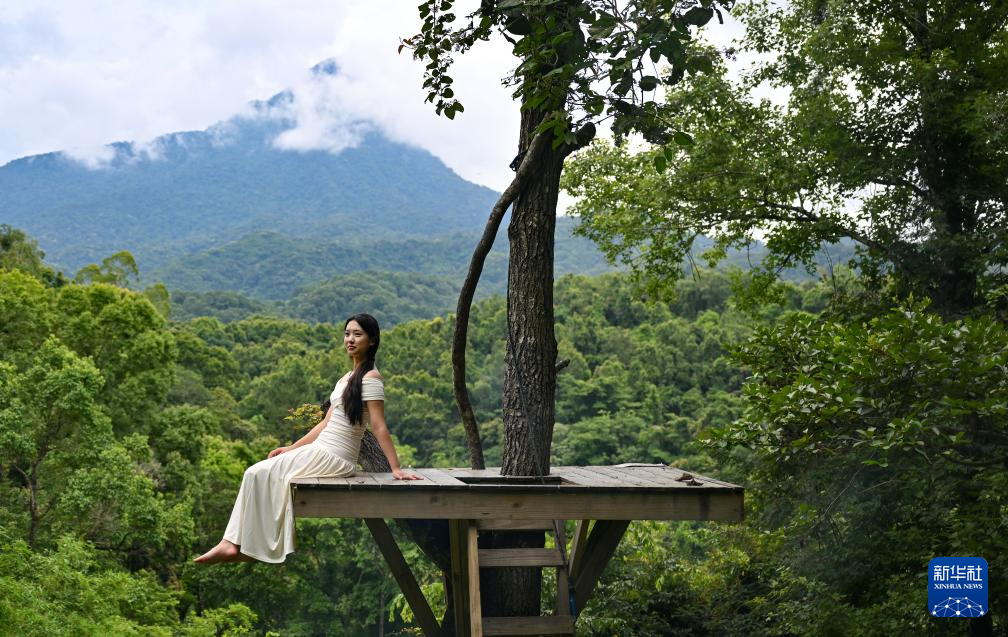2025年5月30日,游客在熱帶雨林國家公園五指山片區的方諾寨景區游玩。新華社記者 郭程 攝