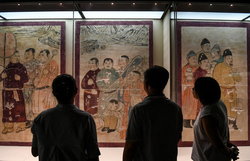 游客在觀看遼上京博物館內的遼代墓葬壁畫。新華社記者彭源攝