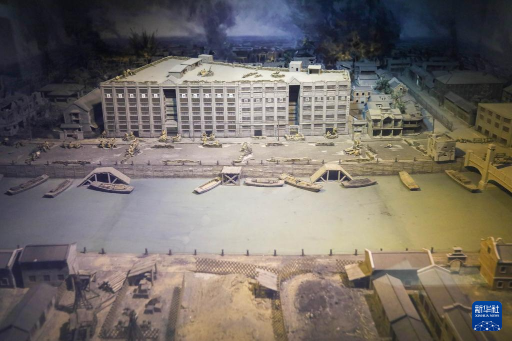 這是在上海四行倉庫抗戰紀念館拍攝的還原四行倉庫歷史場景的模型(2021年9月16日攝)。新華社記者 王翔 攝