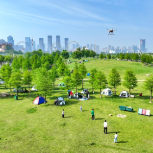 2024年4月29日,在合肥岸上草原,無人機在配送外賣。新華社發(葉玉庭攝)
