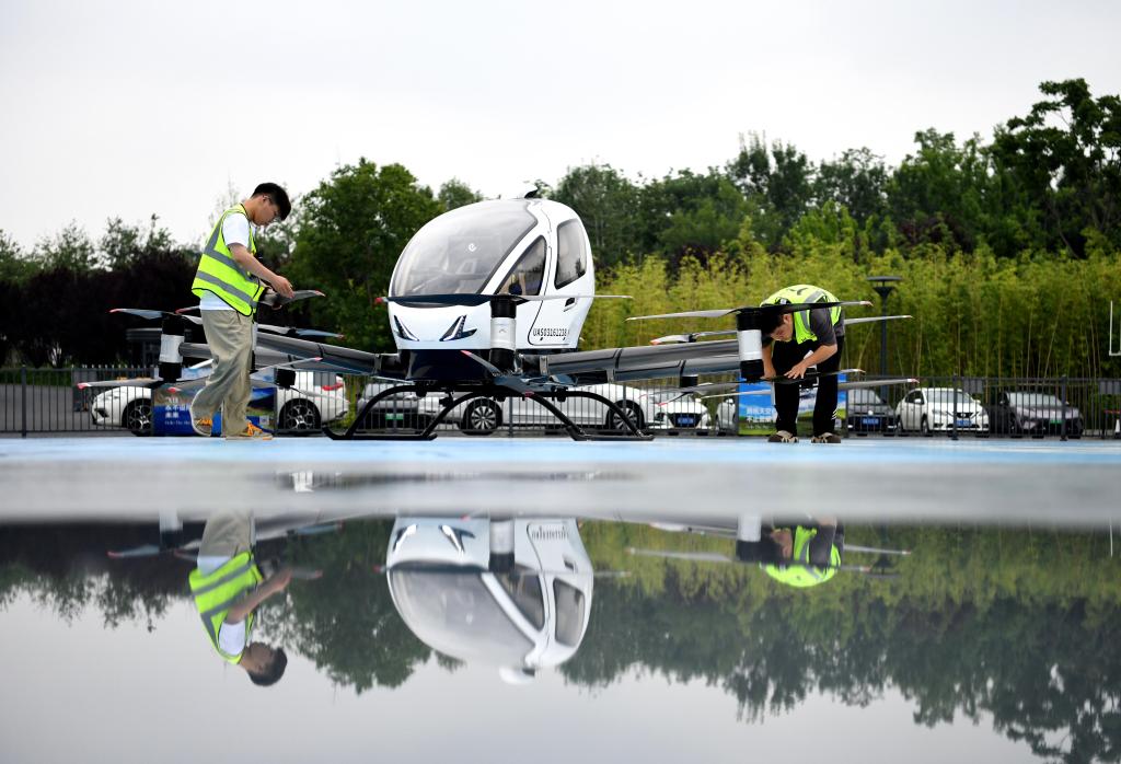6月23日,在合肥駱崗公園,工作人員在進行演示飛行前的檢查工作。新華社記者 劉軍喜 攝