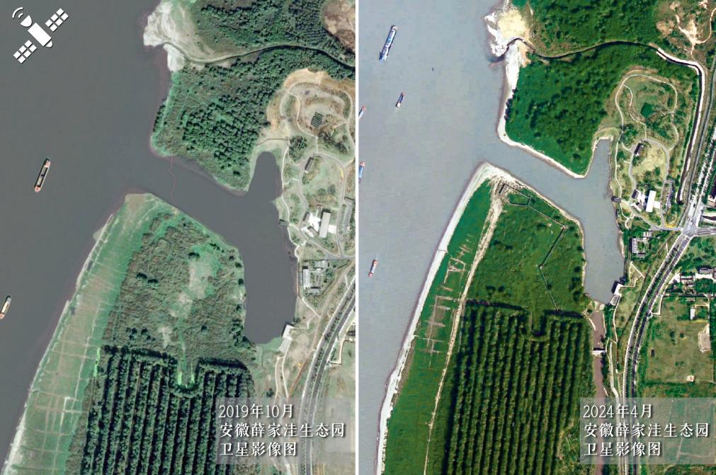 解讀:與2019年整治前的情況對比,2024年經整治后的安徽馬鞍山薛家洼生態園生機盎然。