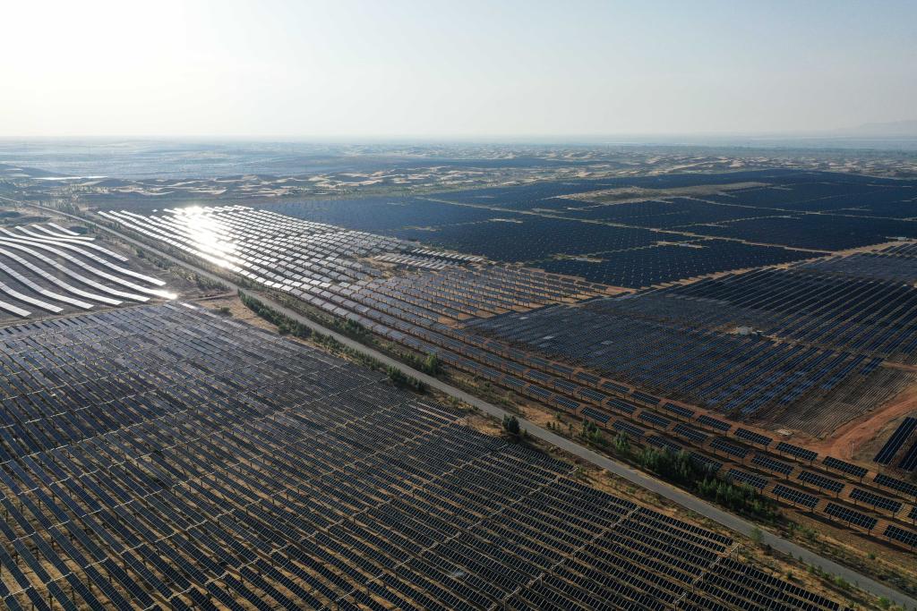 內蒙古杭錦旗蒙西基地庫布其200萬千瓦光伏治沙項目區(2024年6月5日攝)。