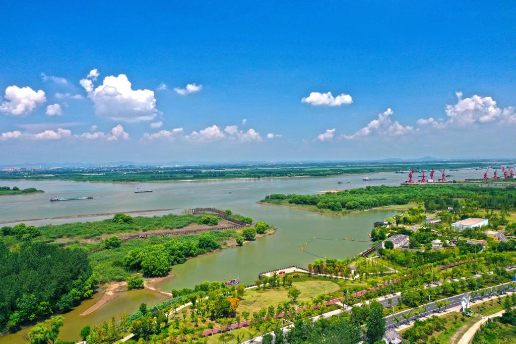 薛家洼生態園位于安徽省馬鞍山市,是長江岸線整治和生態修復的典型代表。這里曾一度分布著眾多非法碼頭、堆積著大量工業固廢,聚集了不少“散亂污”企業。2019年以來,經過持續整治,這里已成為百姓親江親水親綠的生態岸線和城市生態客廳。