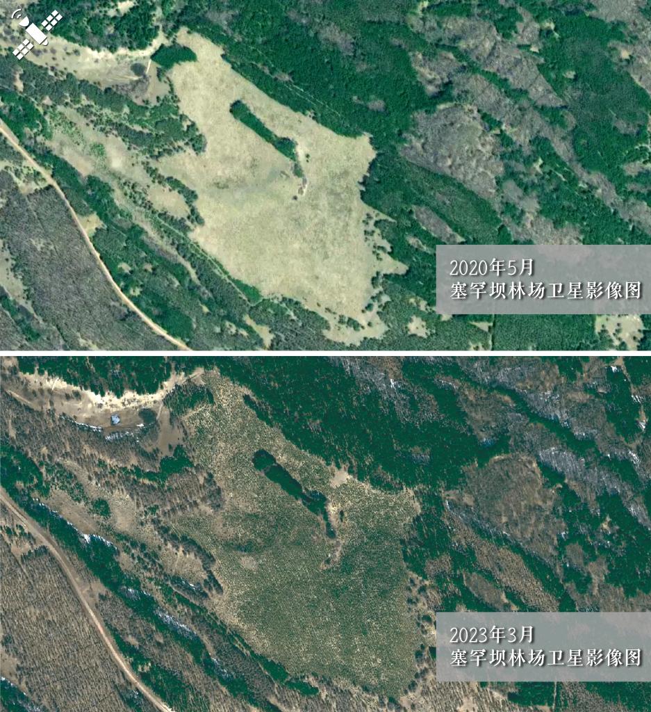 解讀:2023年與2020年相比,塞罕壩林場內的森林覆蓋面積持續提升。