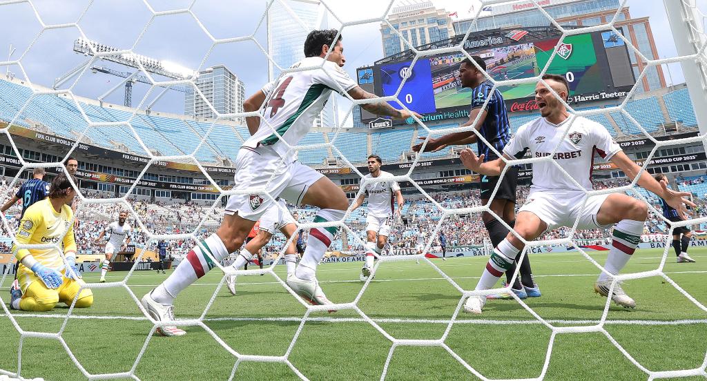 6月30日,弗魯米嫩塞隊球員卡諾(左前)在進球后慶祝