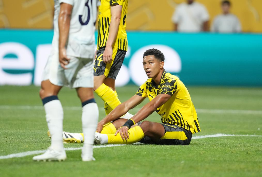 7月1日,多特蒙德隊球員貝林厄姆(下)在比賽中