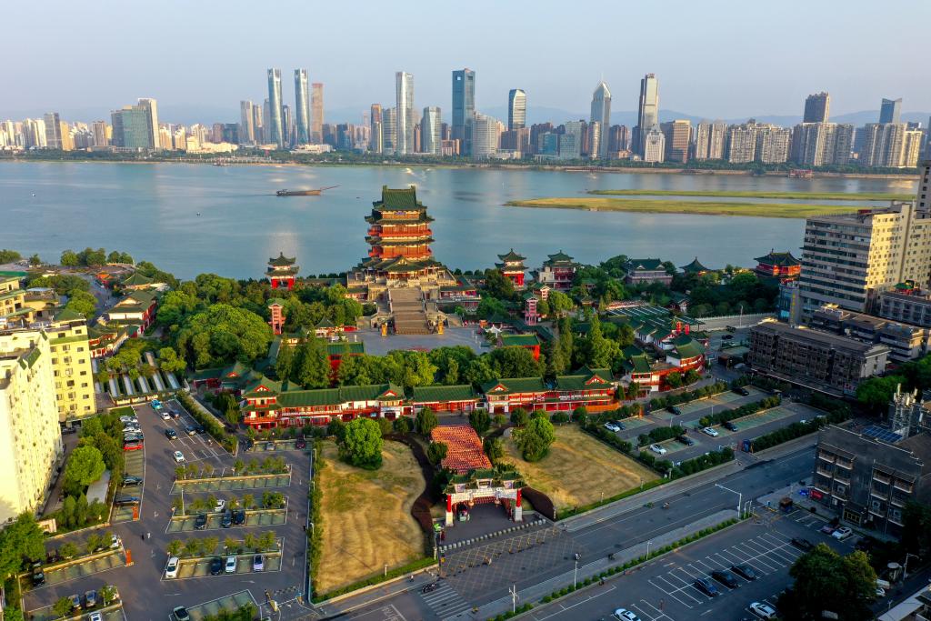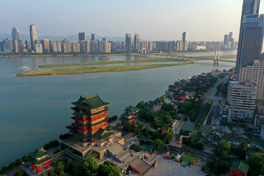晨光中的江西南昌滕王閣景區(7月7日攝,無人機照片)。