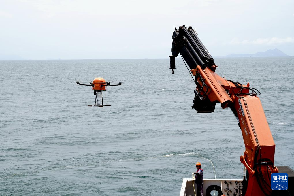 7月8日,智能海水取樣無人機從海里采水歸來。新華社記者 張建松 攝