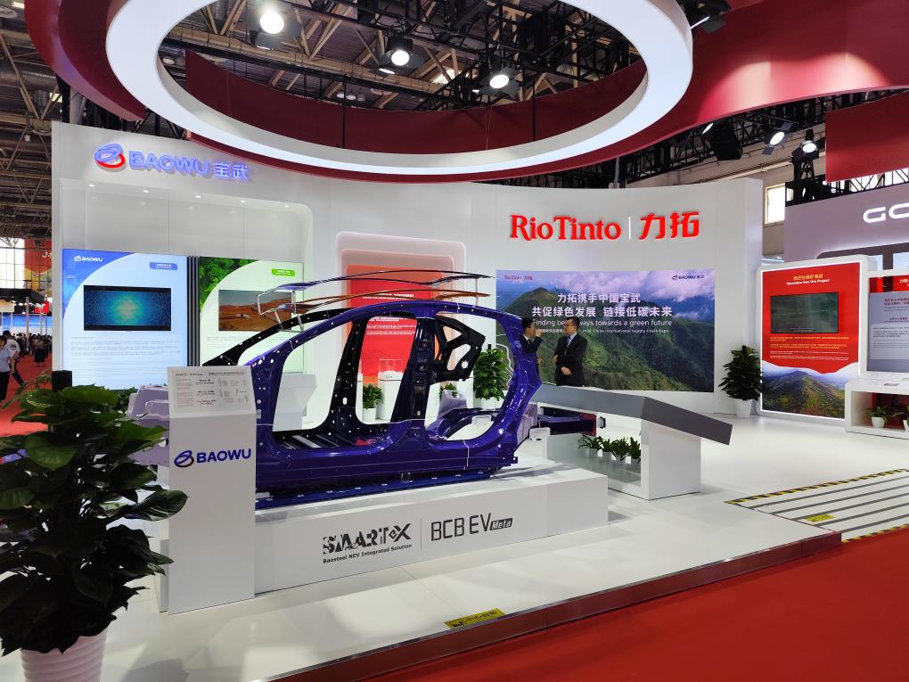 寶鋼在鏈博會上展示的第五代平臺化、集成化純電動白車身。新華社記者 金地 攝