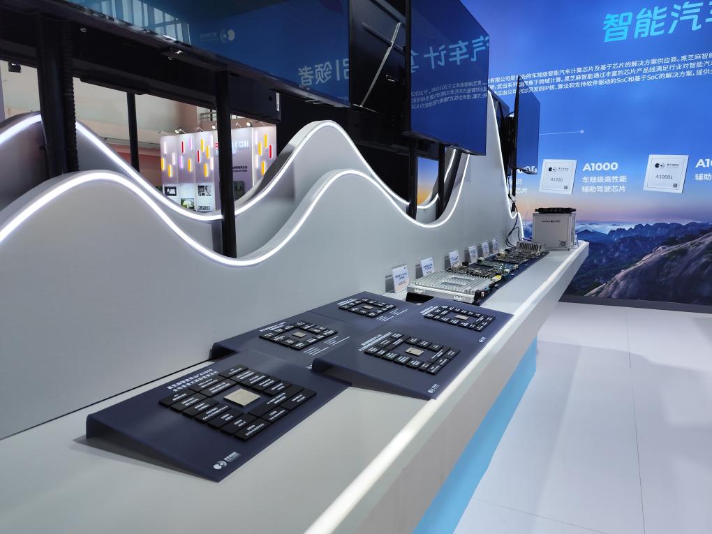 在黑芝麻智能科技有限公司展臺,多款芯片產品依次排列。新華社記者 金地 攝