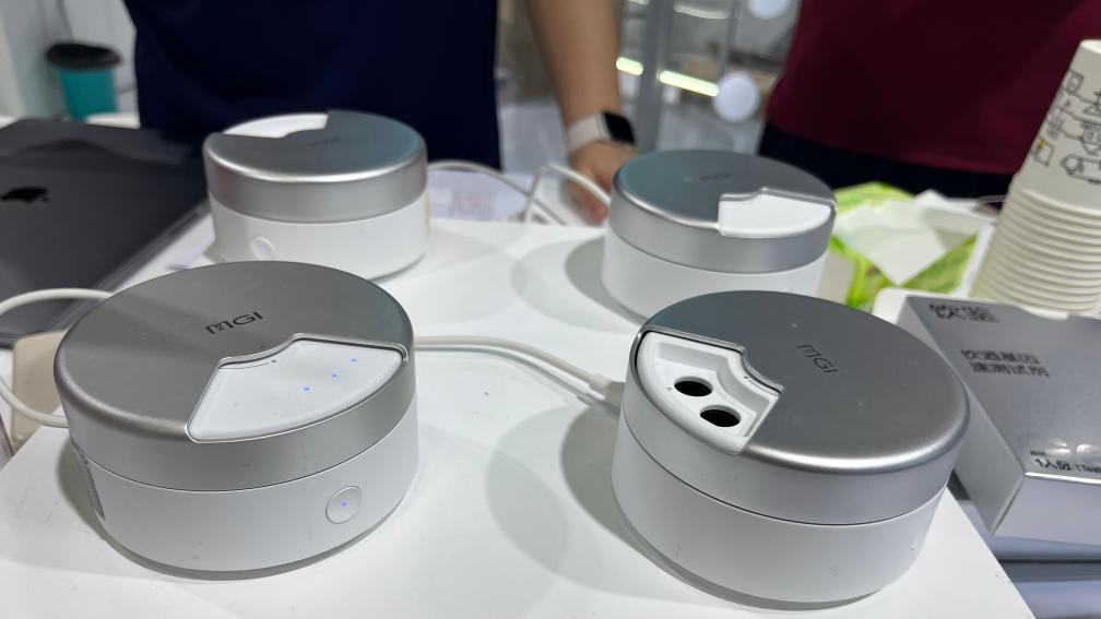 在華大集團展臺,一款飲酒能力基因測序儀吸引參展觀眾圍觀體驗。