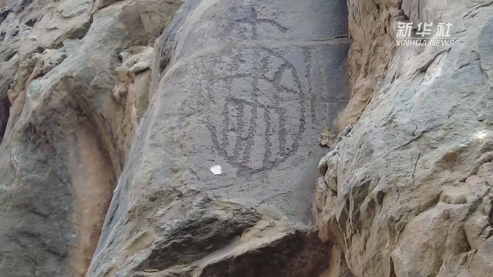 在石壁上的一幅人面像上,存在橫豎相交的線條。賀蘭山巖畫管理處黨組成員、副主任張建國介紹,古代人為了表達對自己失去親人的悲哀,會在臉上用石頭畫成這種橫豎相交的線條,表示鮮血噴涌而出,以“黥面”來表達對親人的紀念和懷念。