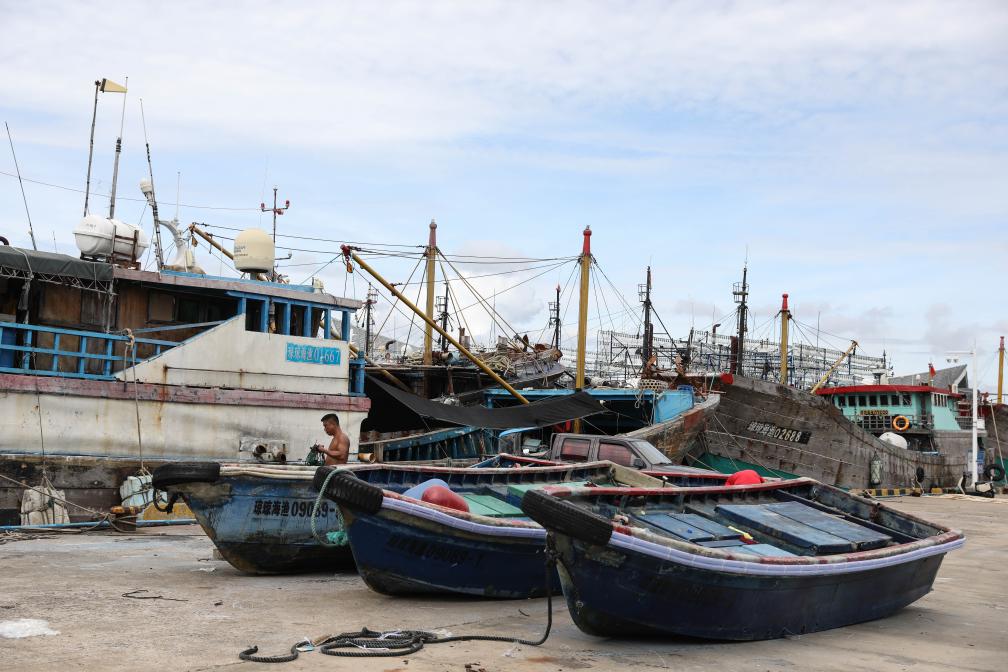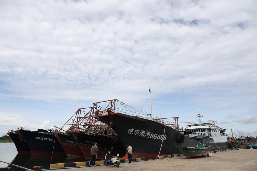 7月24日,在海南省瓊海市潭門鎮,人們在漁船邊。