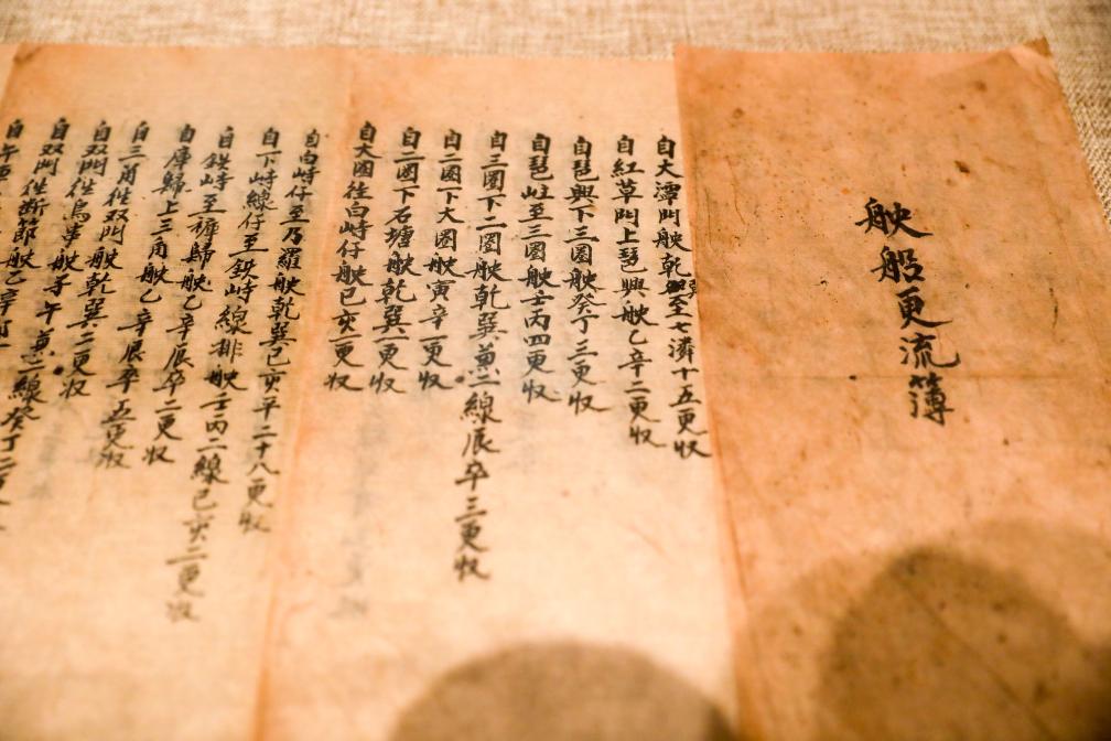 7月22日,在位于海南省瓊海市的中國(海南)南海博物館內,拍攝的駛船更流簿(手抄本)復制品。