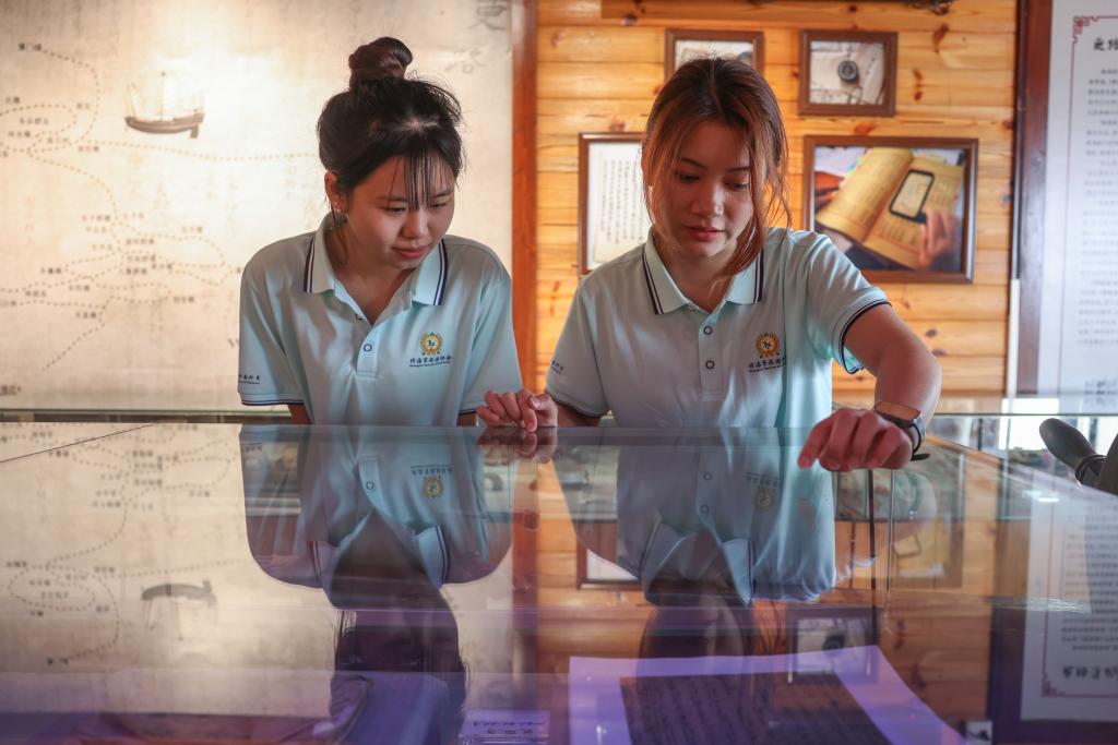 7月31日,游客在海南省瓊海市更路簿博物館內參觀。