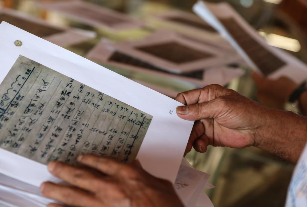 7月22日,在海南省瓊海市更路簿博物館內,王書保整理更路簿復印件。