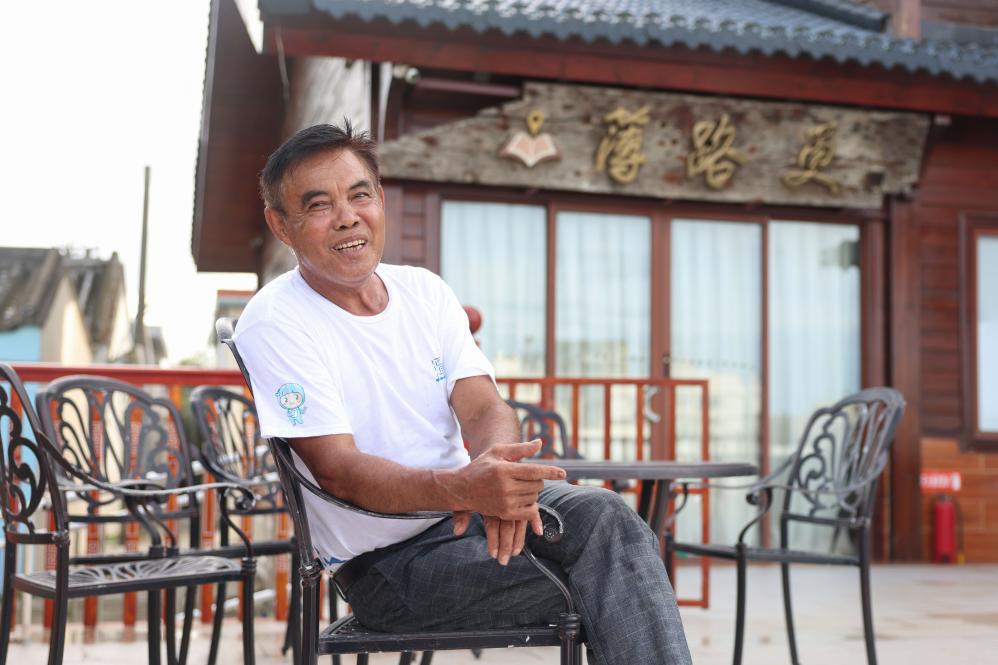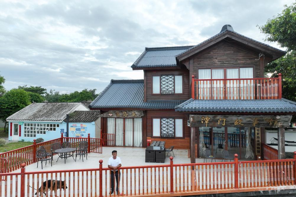 7月22日,在海南省瓊海市,王書保站在更路簿博物館外。