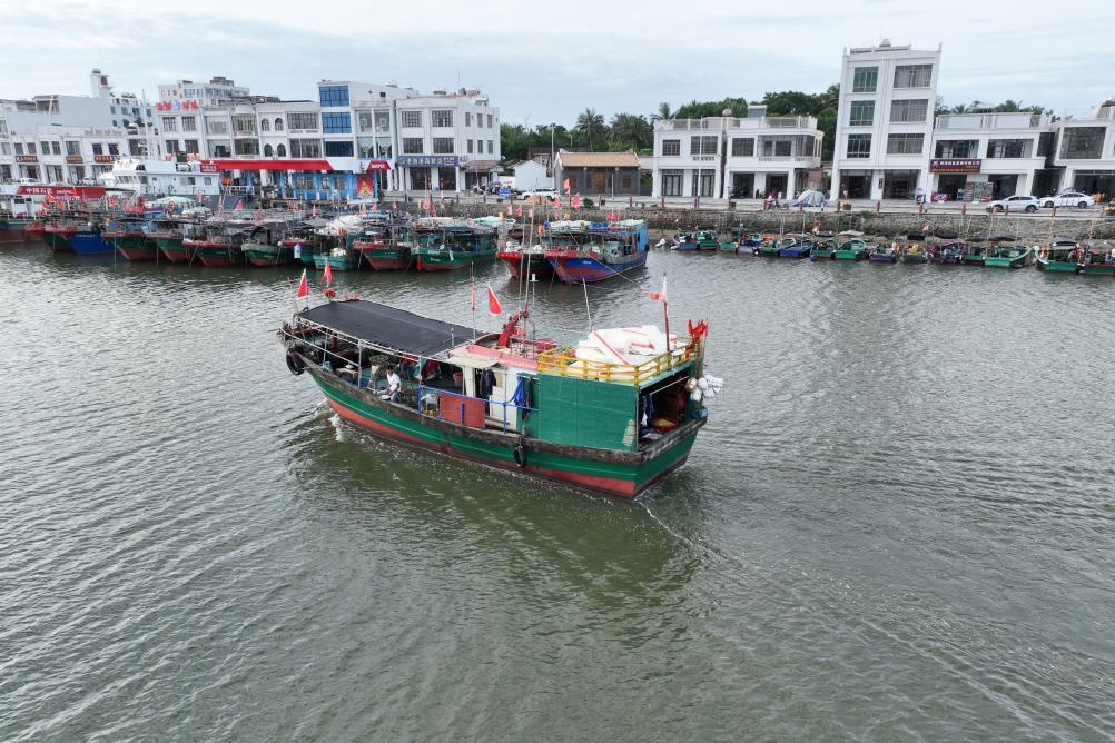 7月22日,在海南省瓊海市,一艘船行駛在潭門港內。