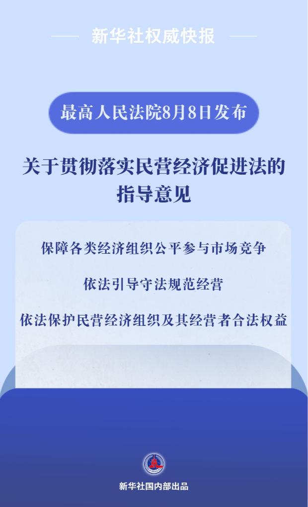 新華社北京8月8日電 題:法治護航!最高法發布意見推動民營經濟健康發展