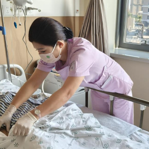 某三級醫院內,醫療護理員正在為患者提供免陪照護服務。(康護之家供圖)
