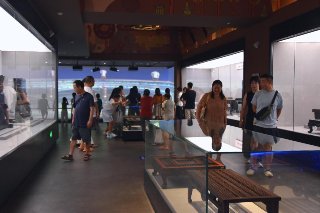 游客們正在欣賞博物館里的“算盤家具”。新華社記者張申博攝