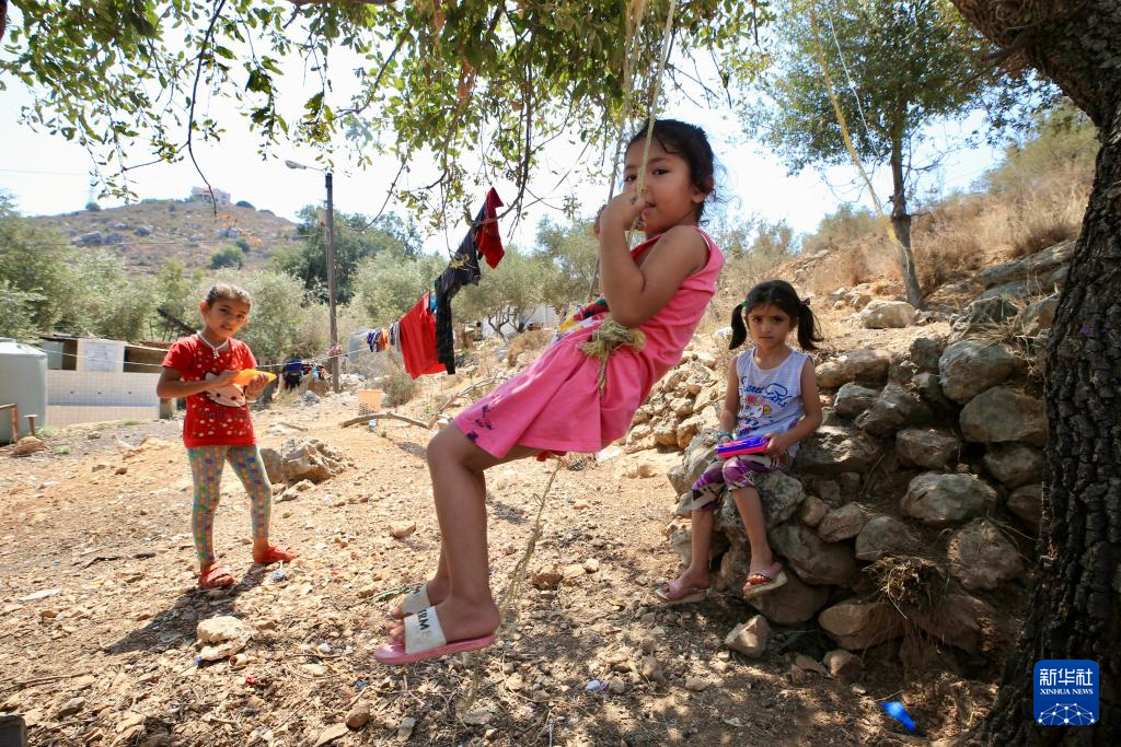 8月14日,在黎巴嫩凱泰爾邁耶難民營,流離失所的敘利亞兒童在一處難民營玩耍。新華社發(阿里·哈希紹攝)