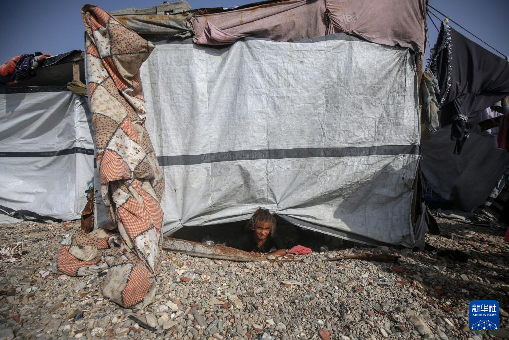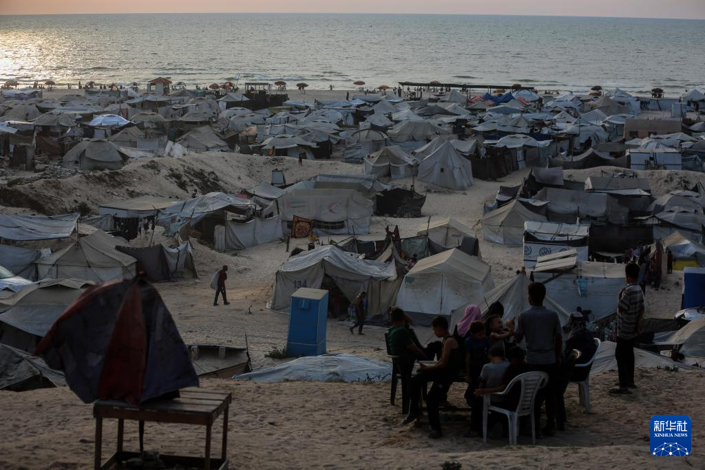 這是8月10日在加沙城拍攝的流離失所的巴勒斯坦人居住的帳篷。新華社發(里澤克·阿卜杜勒賈瓦德攝)