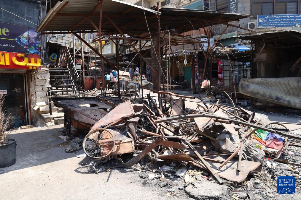 這是8月14日在敘利亞蘇韋達省拍攝的持續沖突后留下的商鋪廢墟。新華社發(蒙塞夫·梅馬里攝)