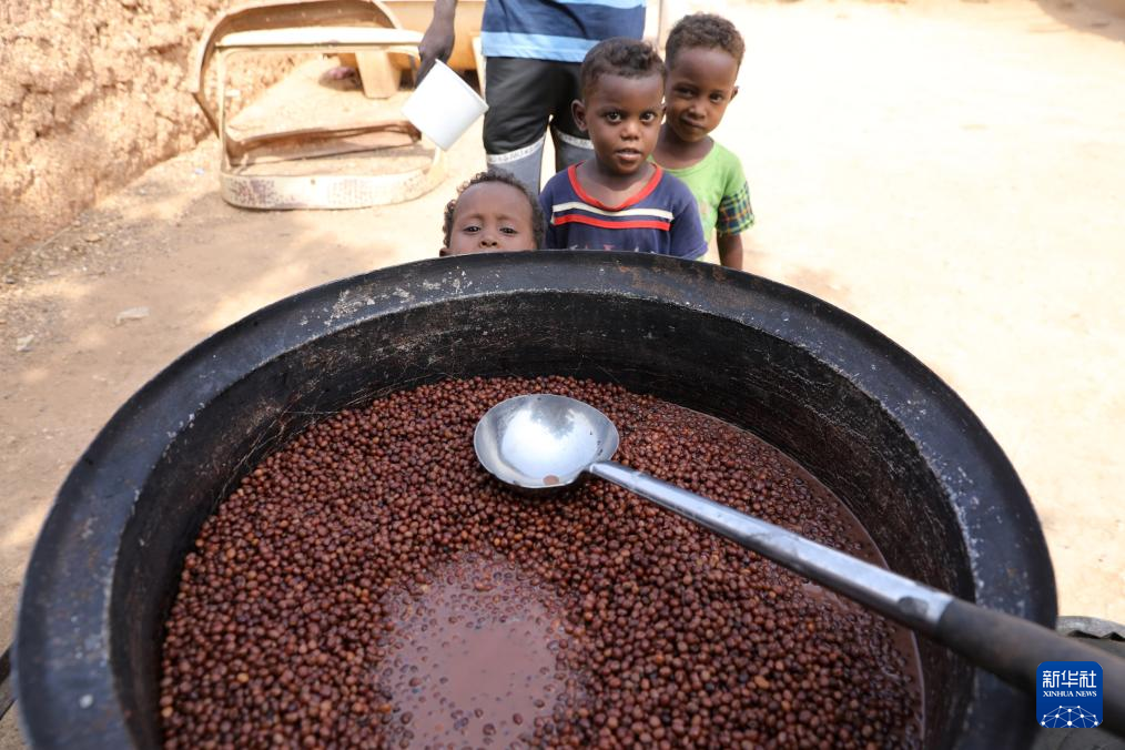 8月12日,在蘇丹首都圈恩圖曼市北部菲塔伊哈卜社區,孩子們在一處慈善廚房排隊等著領取免費餐食。新華社發(穆罕默德·海德爾攝)