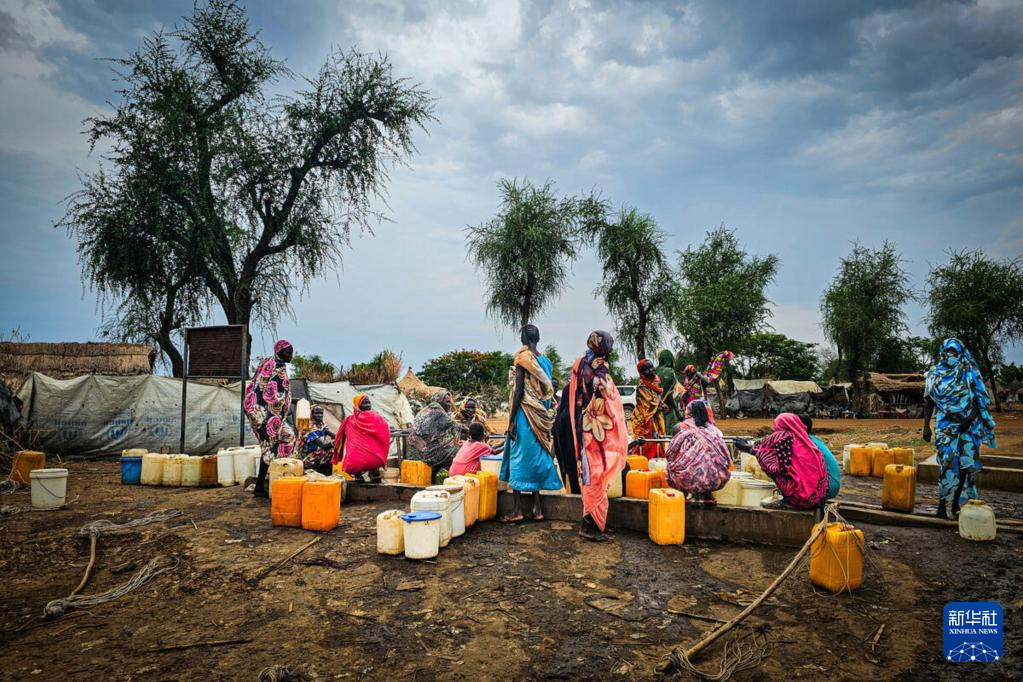 8月8日,在蘇丹北達爾富爾州塔維拉鎮,流離失所的人們排隊等待打水。新華社發(世界糧食計劃署供圖)