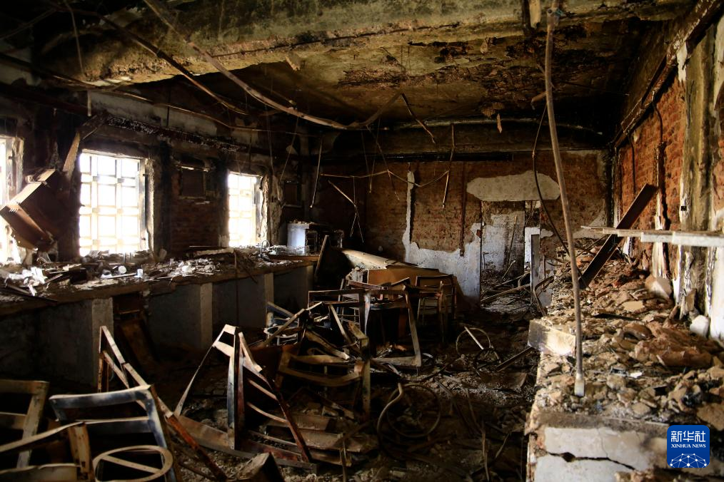 8月12日,在蘇丹首都喀土穆中部,被蘇丹武裝部隊與蘇丹快速支援部隊的武裝沖突所損毀的牙科教學醫院內部一片狼藉。新華社發(穆罕默德·海德爾攝)