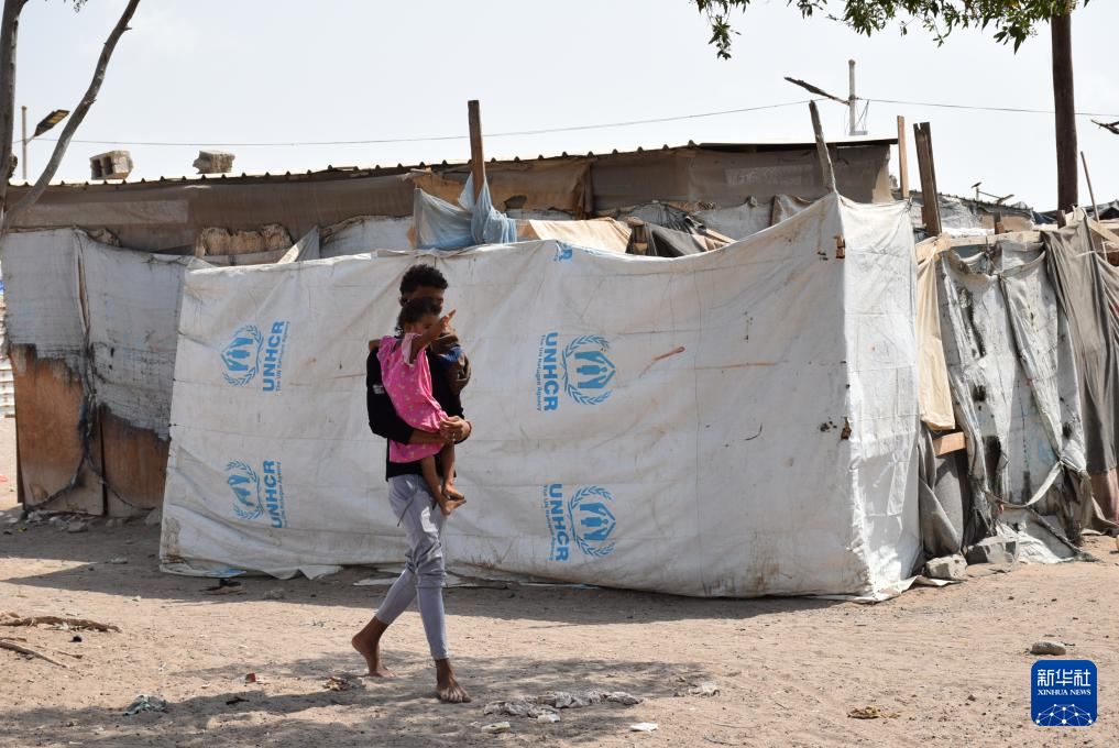 這是8月11日在也門亞丁郊區拍攝的一個流離失所者臨時安置營地。新華社發(穆拉德攝)