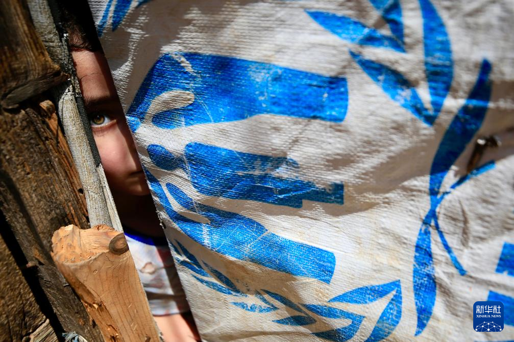 8月14日,在黎巴嫩凱泰爾邁耶難民營,流離失所的敘利亞兒童居住在一處難民營帳篷里。新華社發(阿里·哈希紹攝)