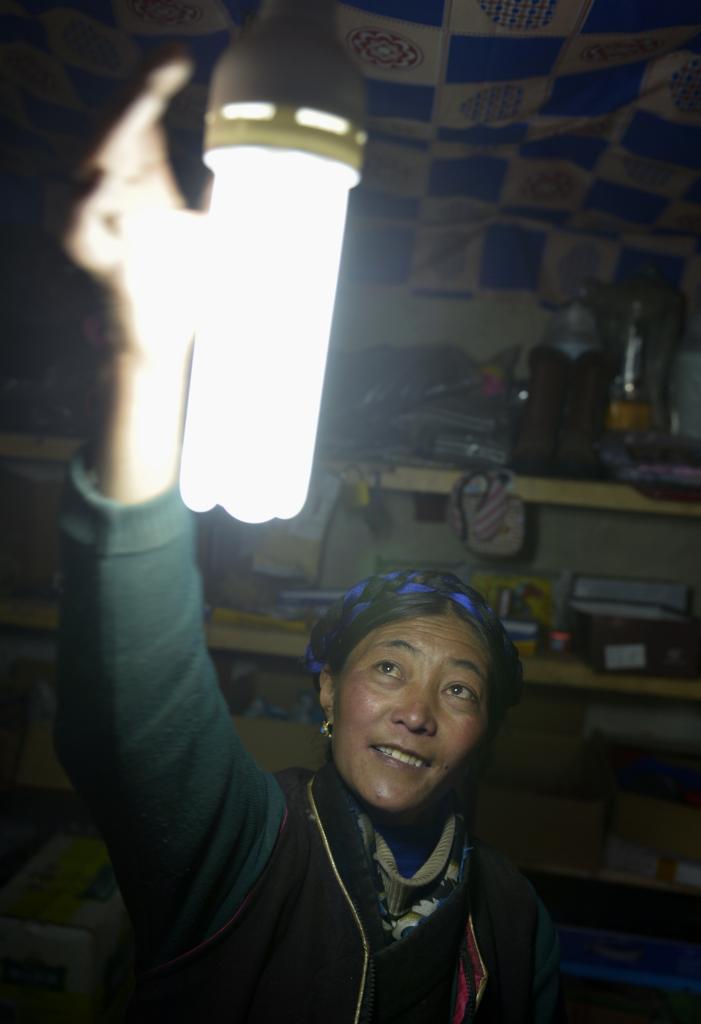 2013年6月7日,西藏浪卡子縣普瑪江塘鄉牧民在家里使用太陽能照明設備。新華社記者 普布扎西 攝