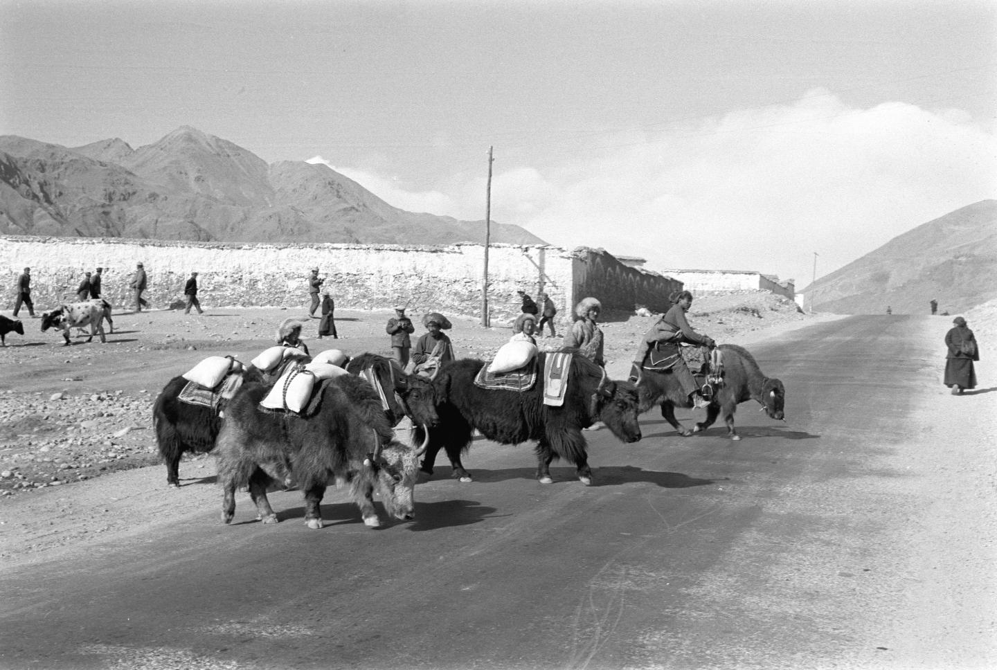 1984年1月,西藏堆龍德慶縣(現為堆龍德慶區)的牧民用牦牛把飼料馱回家。新華社記者 徐澎 攝