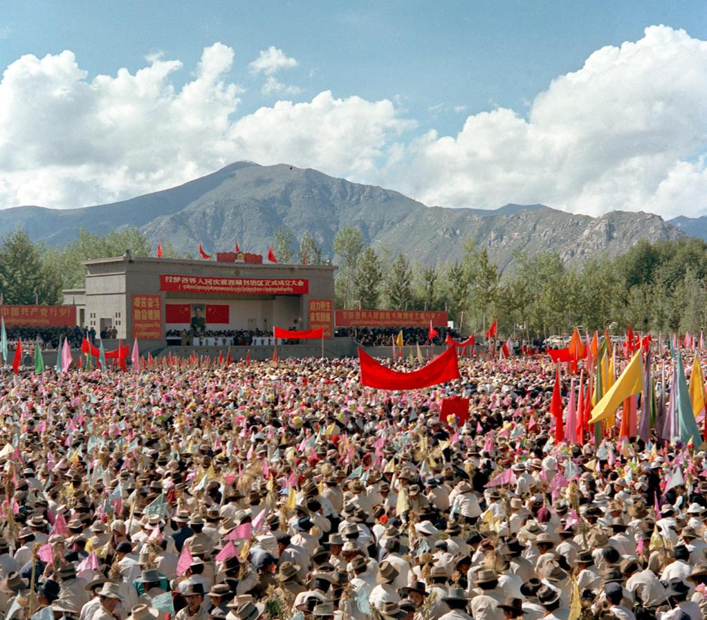 1965年9月,拉薩各界人民集會,慶祝西藏自治區成立。新華社記者袁克忠攝
