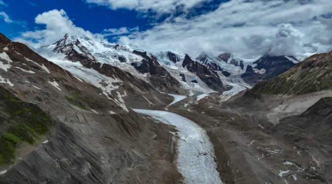 空中俯瞰祥格拉冰川(無人機照片)。新華社記者 晉美多吉 攝